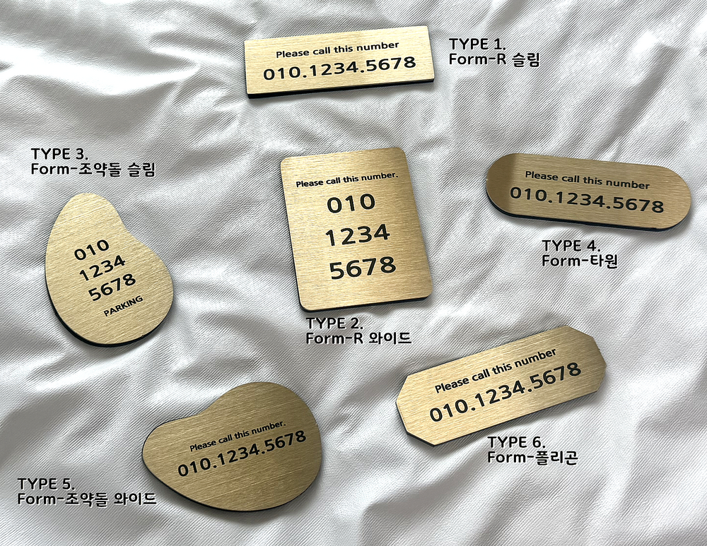 PAR-001 골드 금속 주차번호판 Type 1. Form-R 슬림 금속공예품
