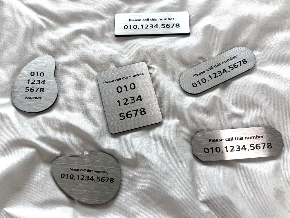 1. 주차번호판에 사용할 문구와 연락처를 적어주세요.