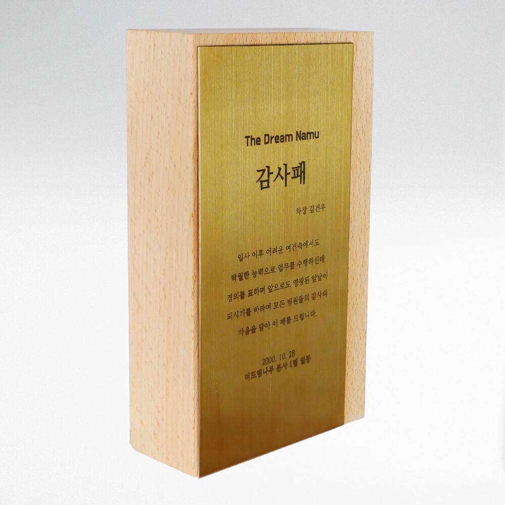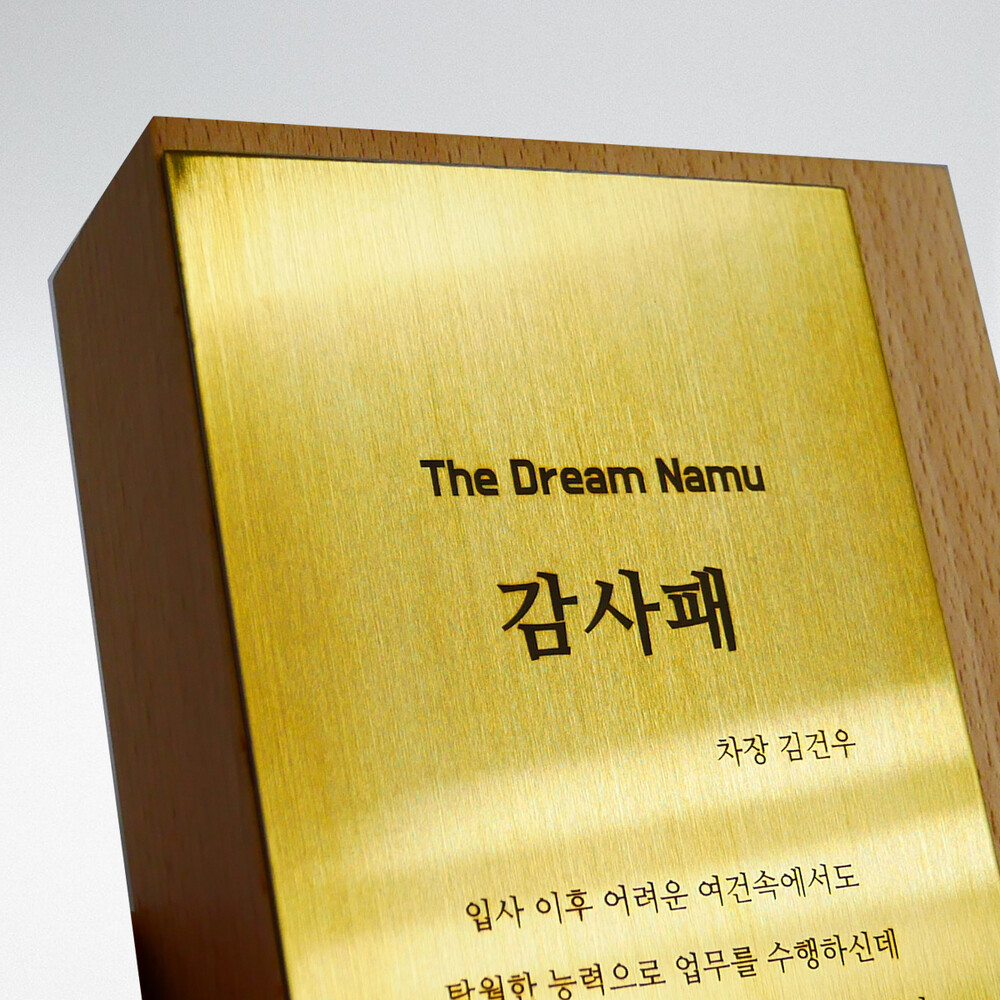 Metal- 골드 스텐 통원목 나무 감사패 금속 상패 기념패 공로패 우드 제작