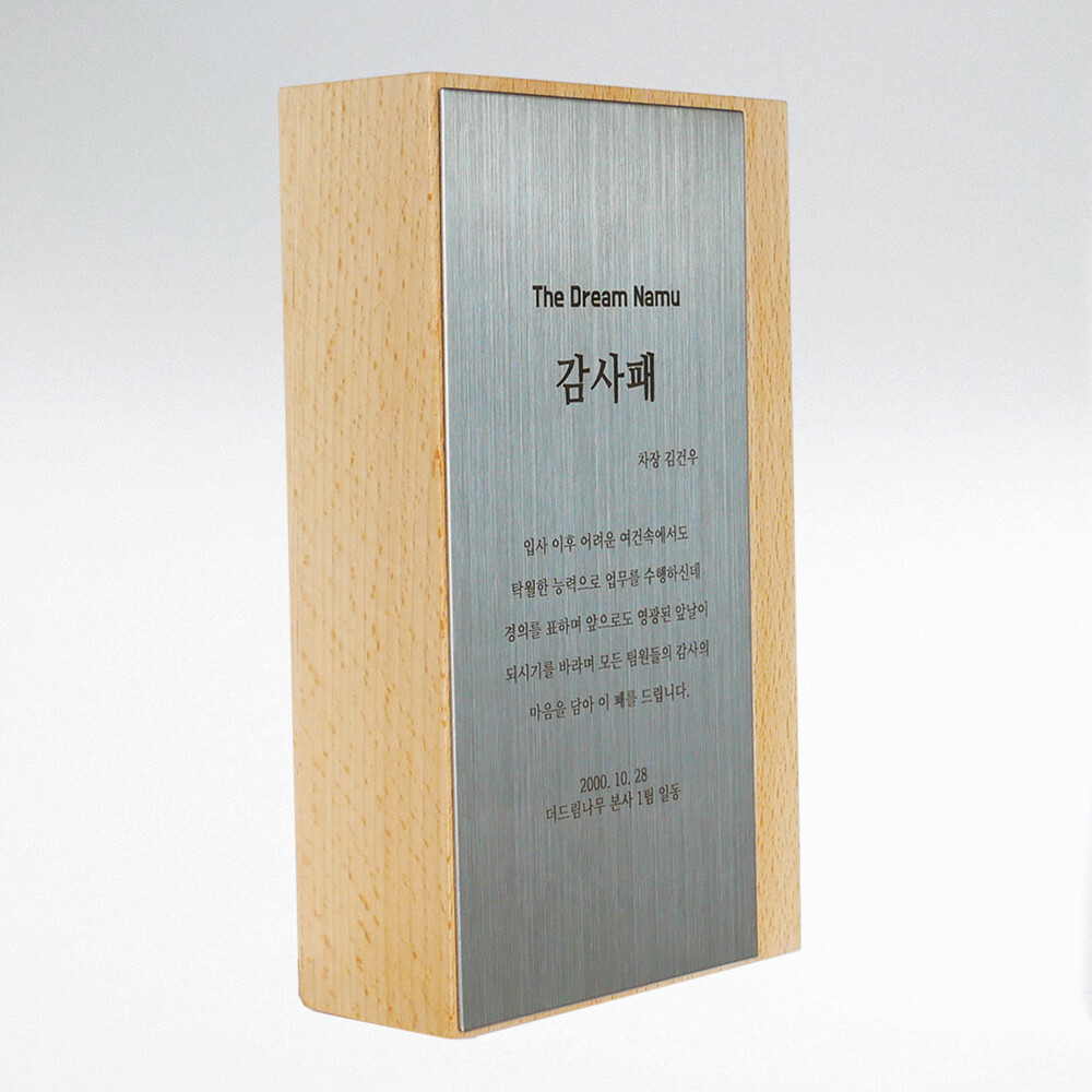 Metal- 실버 스텐 통원목 나무 감사패 금속 상패 기념패 공로패 우드 제작