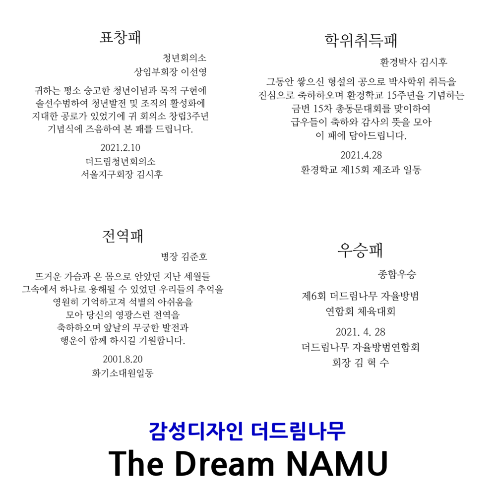 통원목 감사패 블랙오너배지
