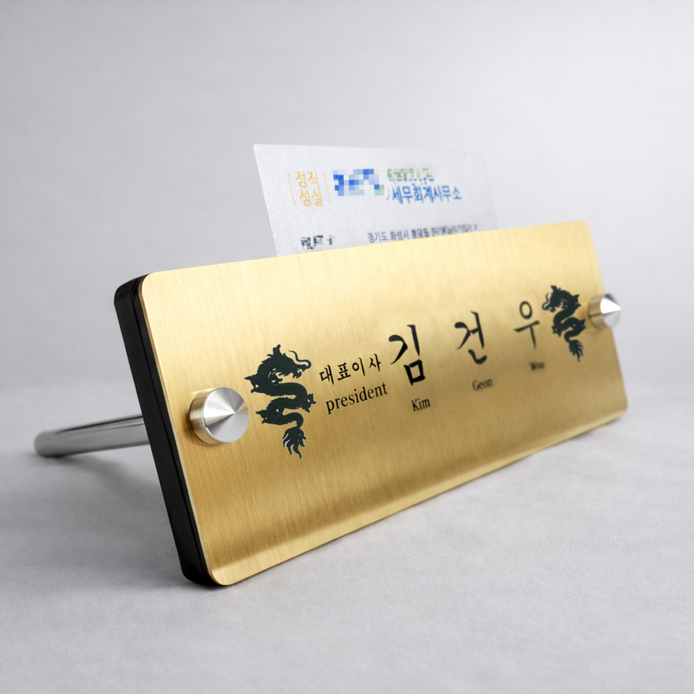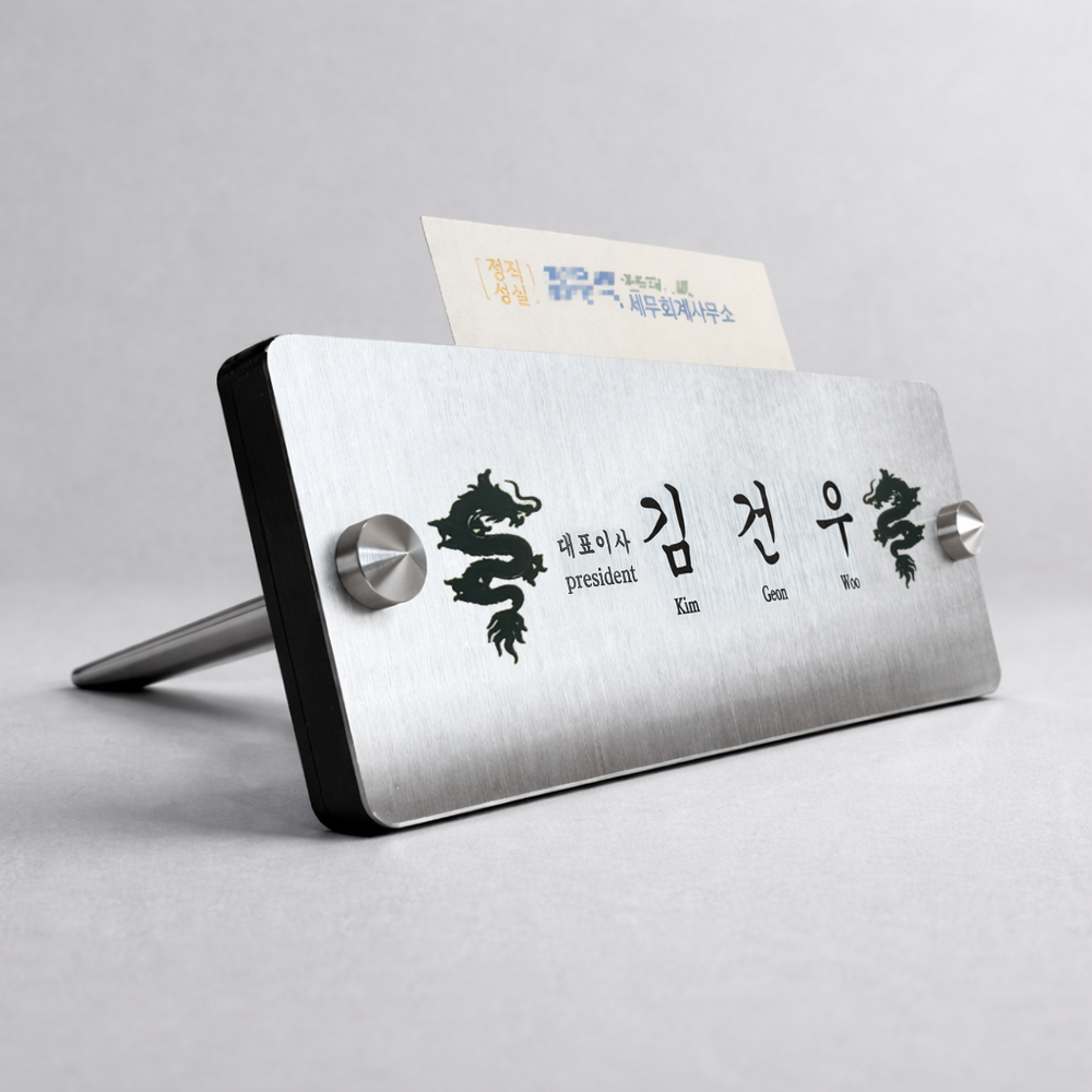 금속공예 스텐 헤어라인 명함꽂이 미니명패 네임플레이트