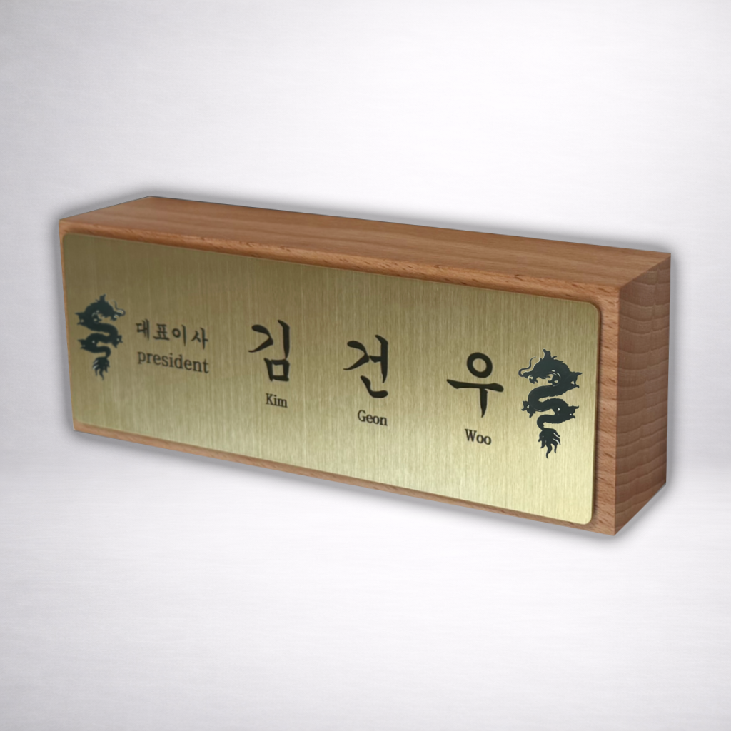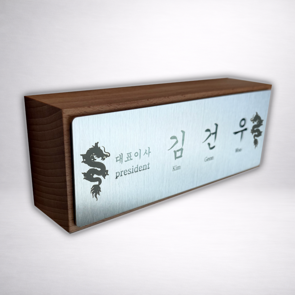 TMJ-001 자개 패턴 용 통원목 명패 스테인리스 헤어라인 금속공예