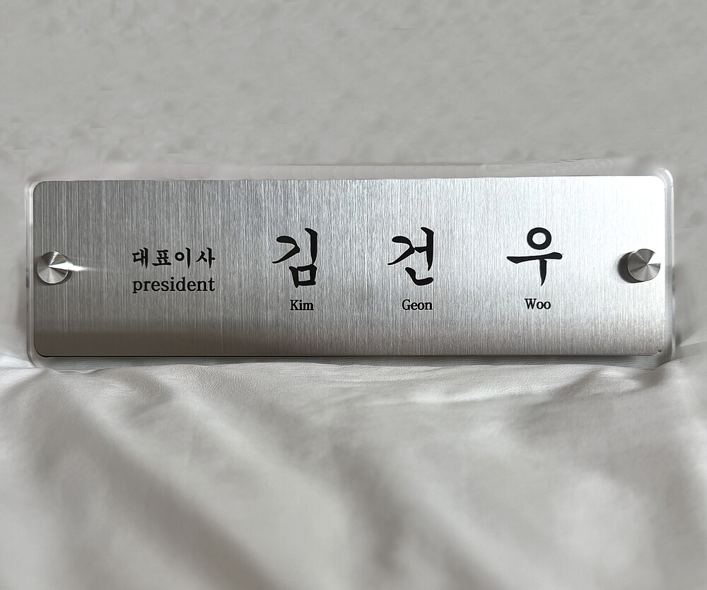 메탈느낌의 아크릴(흉내만 내는 저가형)이 아닌 진짜 금속 소재에 문구가 각인된 고급형 제품입니다.)