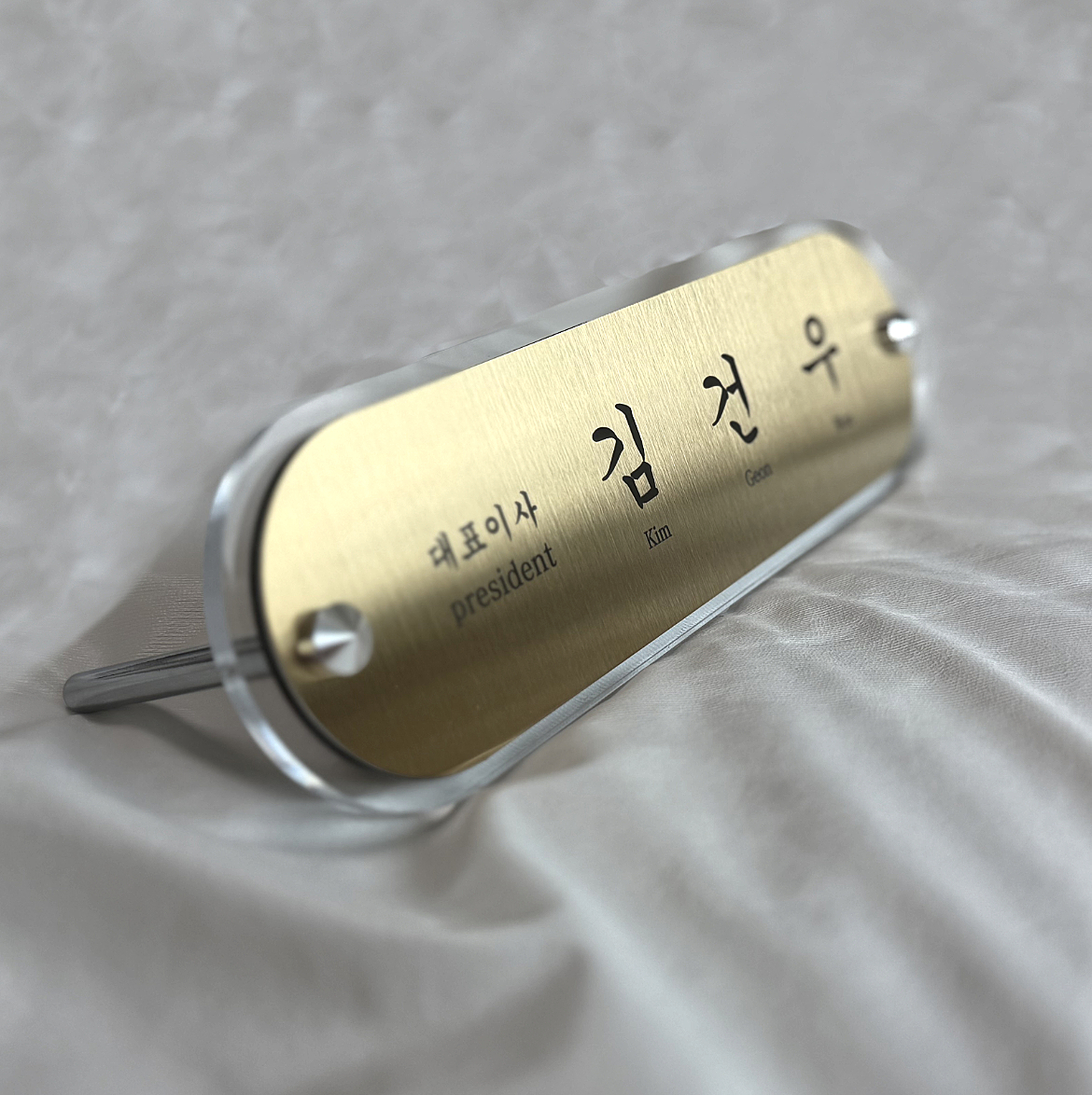 메탈느낌의 아크릴(흉내만 내는 저가형)이 아닌 진짜 금속 소재에 문구가 각인된 고급형 제품입니다.)