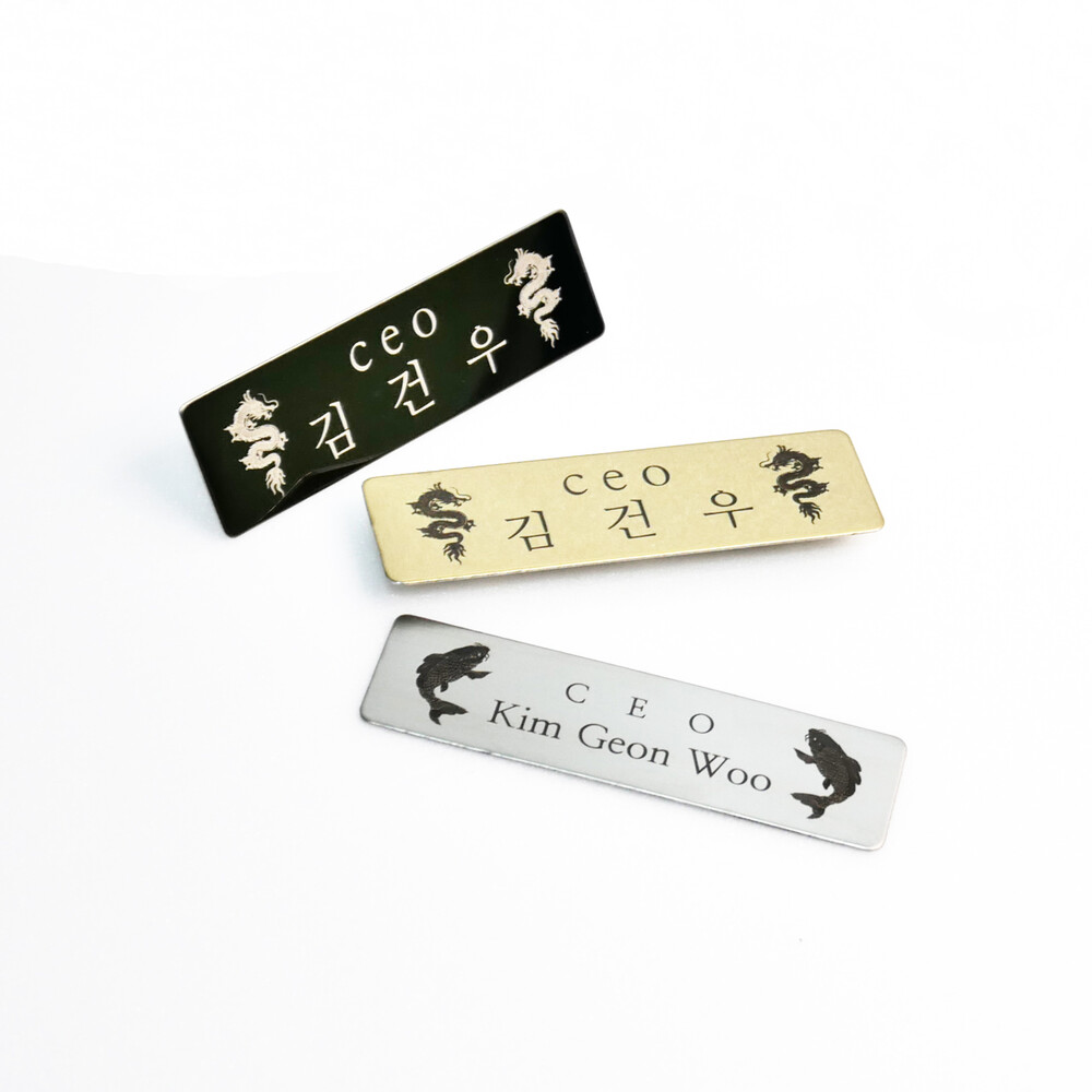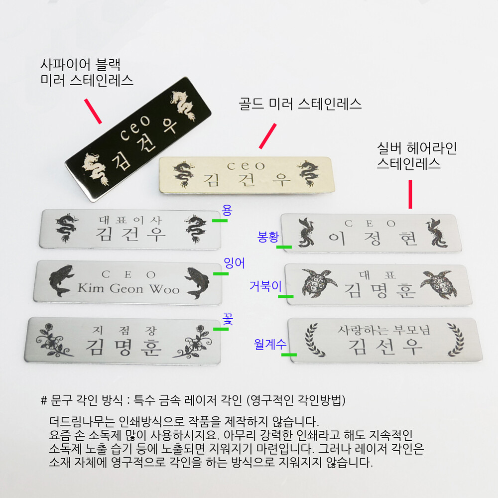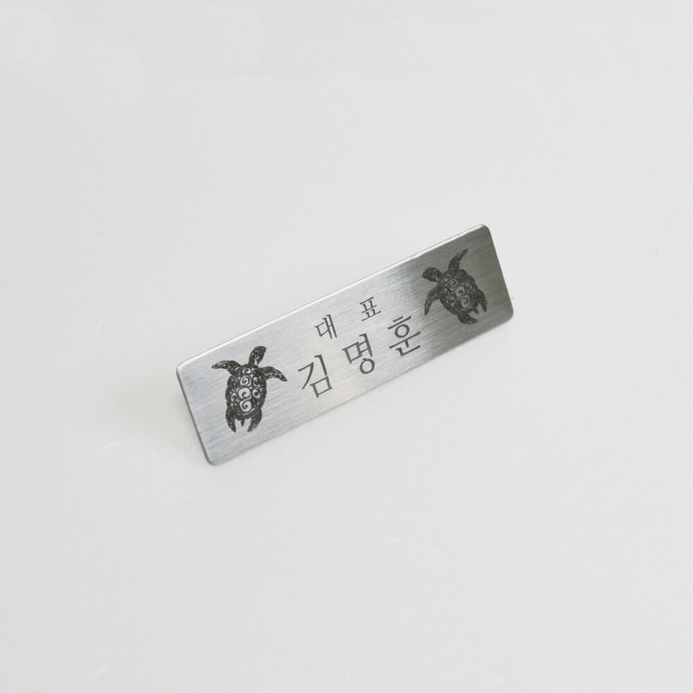 대용자개 금속명찰 스텐명찰 네임텍 자석명찰 대표 회사 진급 선물 레이저각인