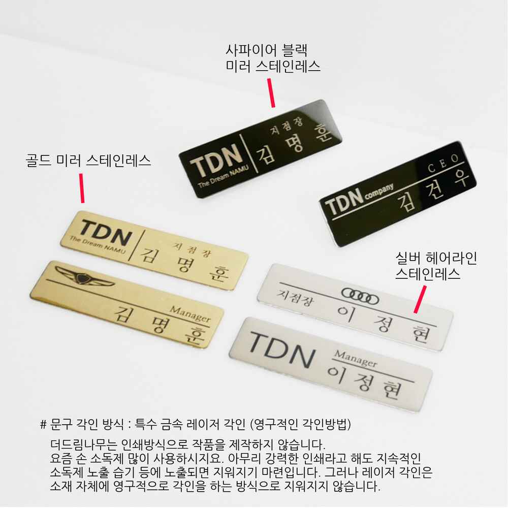 금속명찰 스텐명찰 네임텍 자석명찰 대표 회사 진급 선물 레이저각인