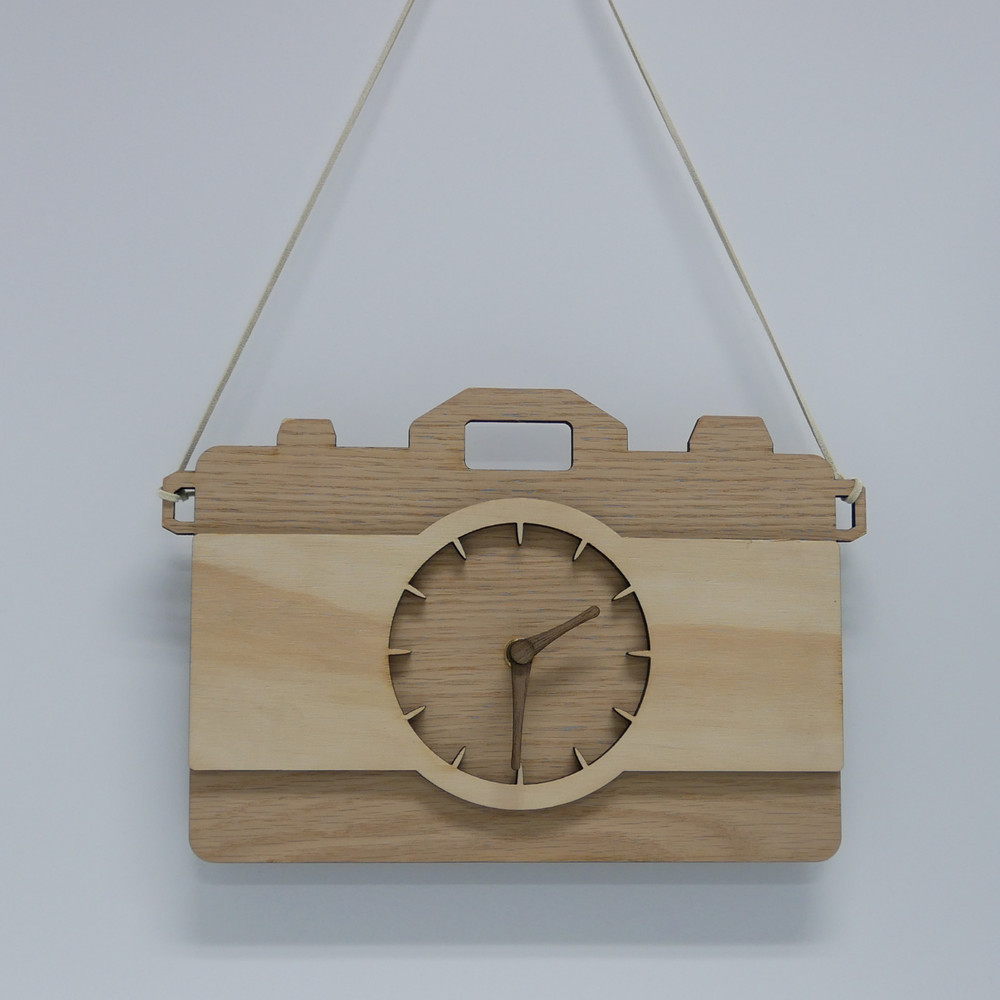 오크나무 빈티지 카메라 무소음 벽시계