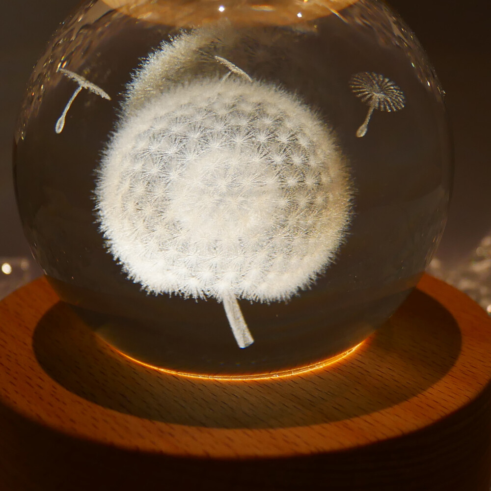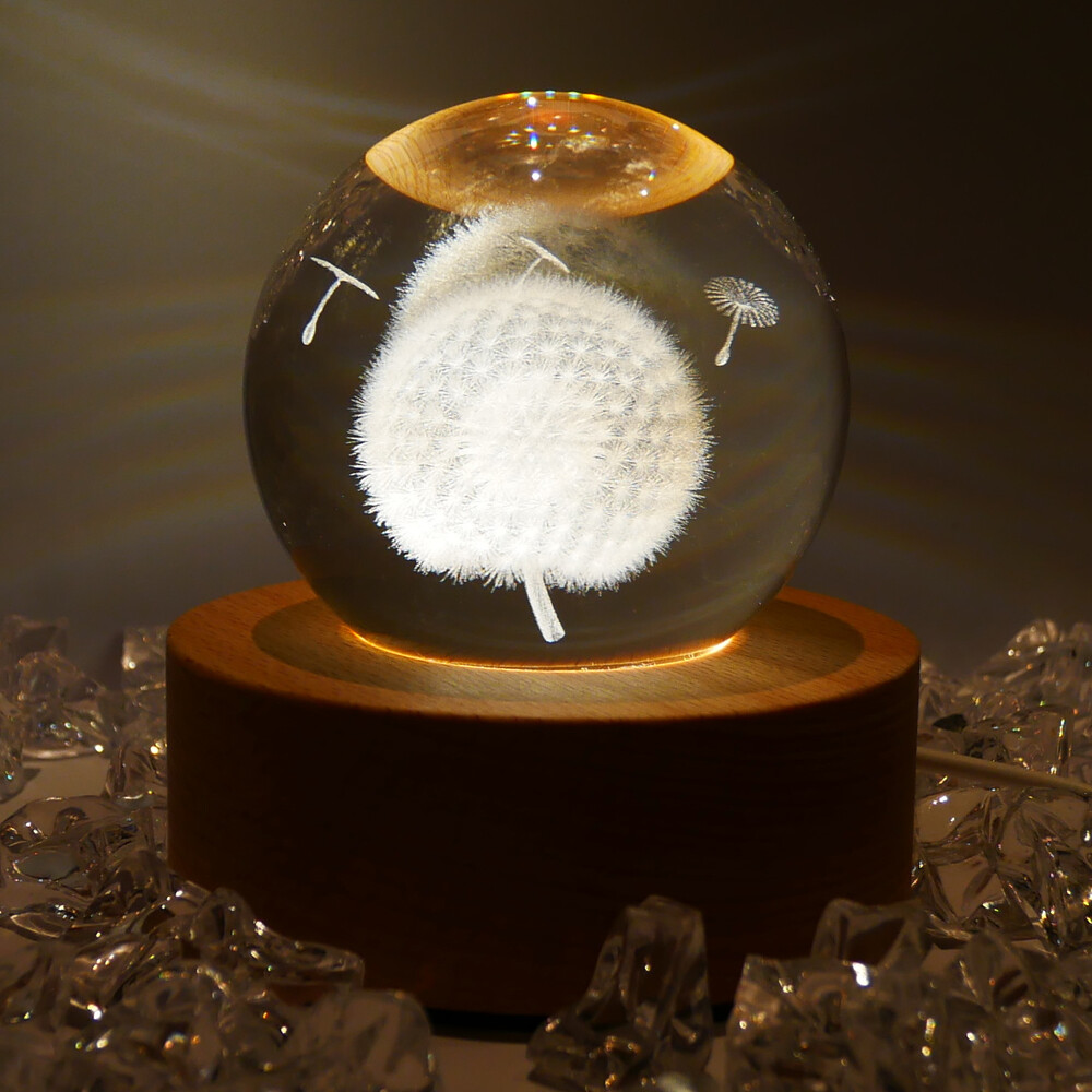민들레 무드등 크리스탈 원목 수정구